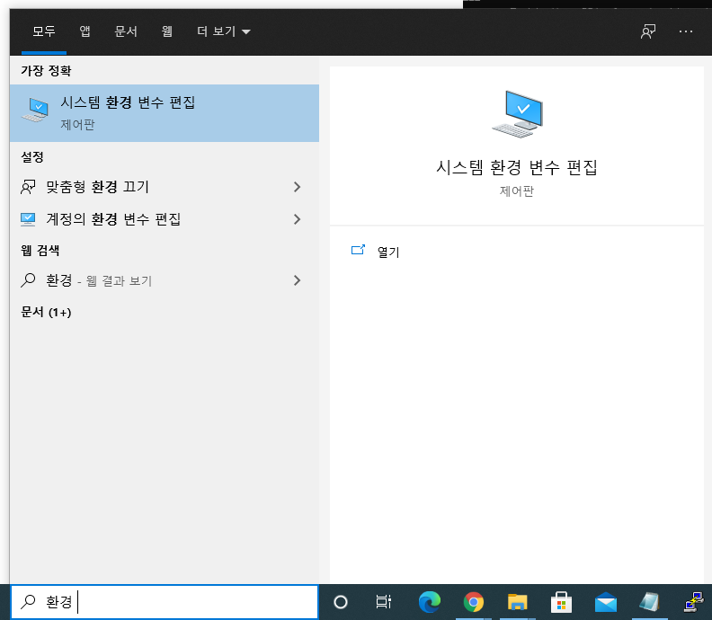 1. 윈도우 검색창에 환경 변수를 검색해서 '시스템 환경 변수 편집'을 선택하던지 제어판 -> 시스템을 들어갑니다.
