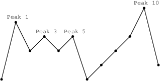 - 4개일 경우는 peak1과 5와 10 이후로 한개더 부족하기 때문에 3을 return