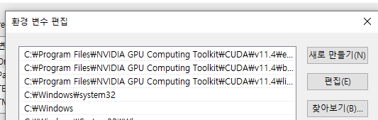 C:\Program Files\NVIDIA GPU Computing Toolkit\CUDA\v11.4\extras\CUPTI\lib64그래도 적용이 안될 경우는 위 경로를 환경 변수에도 설정해주어야 해당 파일을 찾을 수 있습니다.
